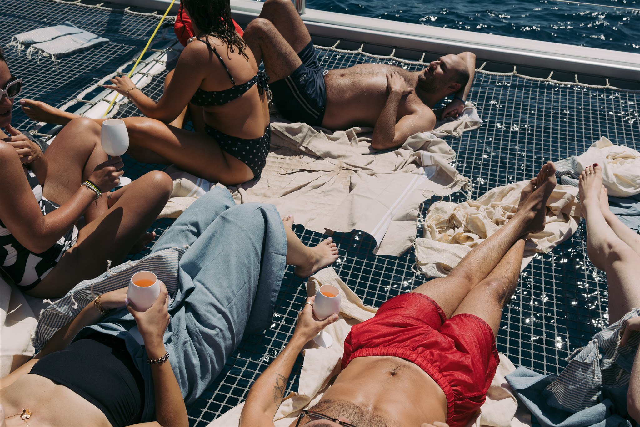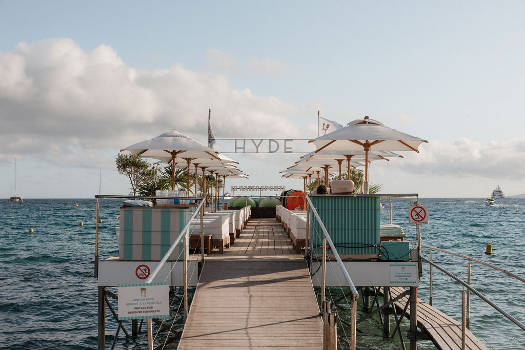 - Poolside chic arrival (white linen, rosé, soft lounge music, effortless Riviera energy)