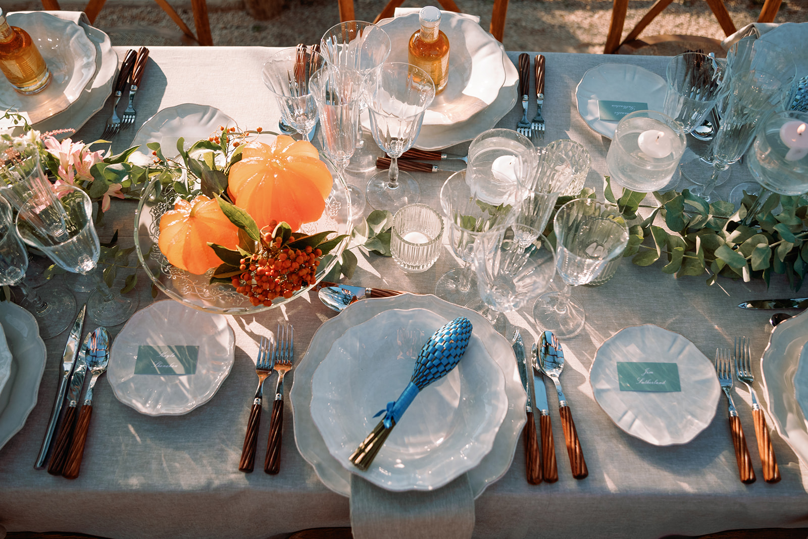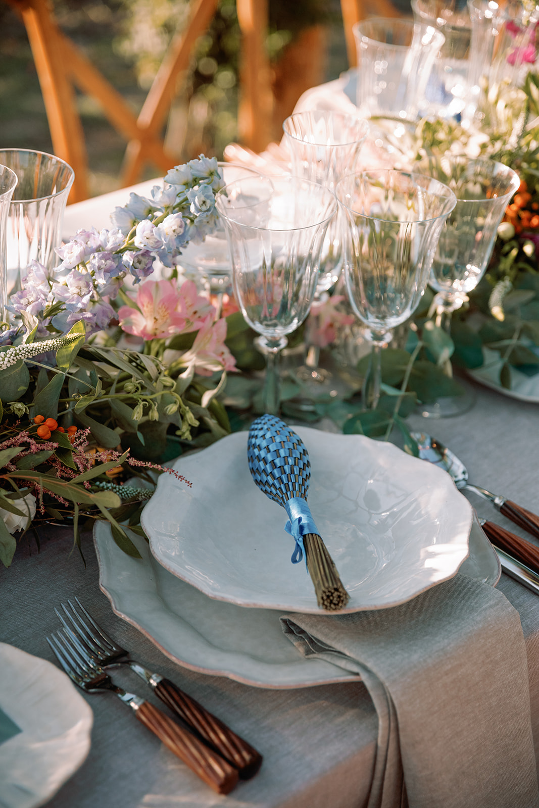 Textures, candlelight, and a restrained palette set the visual language for the full weekend.
